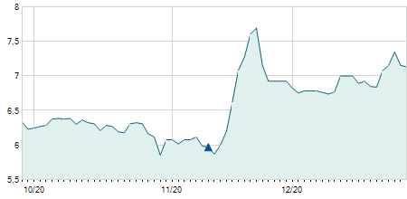 | 09/06/2022 | +1,10 / +9,40% | 12,80 | 12,80 | 12,80 | 12,80 | 12,80 | 12,49 | 100 |   |