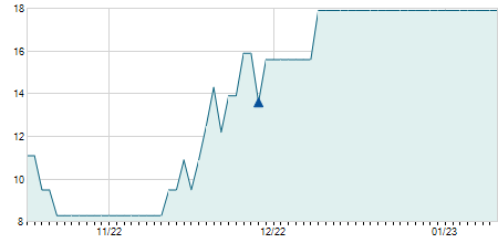 | 09/03/2022 | -2,40 / -9,60% | 22,60 | 22,60 | 22,60 | 22,60 | 22,60 | 22,05 | 100 |   |