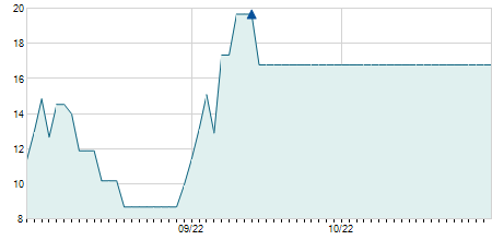 | 17/04/2019 | -0,05 / -0,28% | 18,20 | 18,20 | 18,00 | 18,05 | 18,13 | 5,96 | 138.850 |   |