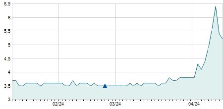 | 04/06/2019 | -0,15 / -0,83% | 18,00 | 18,20 | 17,60 | 17,85 | 17,85 | 5,90 | 338.540 |   |
