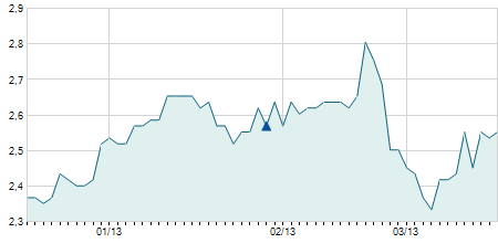 | 21/10/2011 | +0,40 / +2,12% | 19,20 | 19,50 | 19,00 | 19,30 | 19,30 | 2,73 | 88.700 |   |