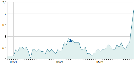 | 26/05/2011 | +0,70 / +4,43% | 15,20 | 16,50 | 15,10 | 16,50 | 16,50 | 2,34 | 111.540 |   |