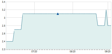 | 31/10/2011 | -0,30 / -1,53% | 20,00 | 20,10 | 19,30 | 19,30 | 19,30 | 2,73 | 141.560 |   |