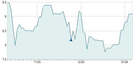 | 31/01/2024 | +0,10 / +0,49% | 20,50 | 20,90 | 20,00 | 20,40 | 20,40 | 16,51 | 92.100 |   |