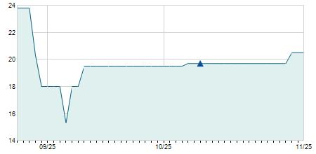 | 03/11/2020 | +0,70 / +14,29% | 5,60 | 5,60 | 5,60 | 5,60 | 5,60 | 5,60 | 100 |   |