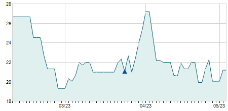| 20/06/2022 | -0,05 / -0,11% | 46,70 | 46,70 | 45,30 | 45,85 | 45,90 | 36,81 | 2.700 |   |