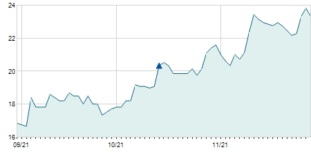 | 09/05/2019 | +1,10 / +9,65% | 11,30 | 12,50 | 11,30 | 12,50 | 12,36 | 4,67 | 373.300 |   |