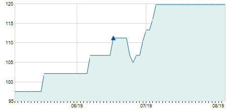 | 27/08/2024 | 0,00 / 0,00% | 12,80 | 12,80 | 12,80 | 12,80 | 12,80 | 12,80 | 0 |   |