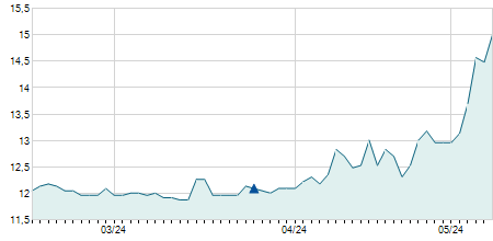 | 26/07/2022 | +0,10 / +0,59% | 16,70 | 17,00 | 16,50 | 17,00 | 16,78 | 12,96 | 143.700 |   |