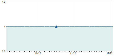 | 05/11/2018 | -0,10 / -5,56% | 1,70 | 1,70 | 1,70 | 1,70 | 1,70 | 1,70 | 2.500 |   |