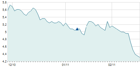 -0,70 / -4,62%