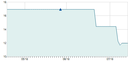 | 18/12/2014 | -0,30 / -2,27% | 12,90 | 12,90 | 12,90 | 12,90 | 12,90 | 4,32 | 9.180 |   |