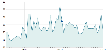 | Ngày | Thay đổi | Mở cửa | Cao nhất | Thấp nhất | Đóng cửa | Trung bình | Đóng cửa ĐC | Khối lượng |  |