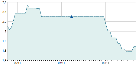| 31/10/2014 | +0,30 / +2,22% | 13,50 | 13,80 | 13,50 | 13,80 | 13,80 | 4,62 | 6.960 |   |