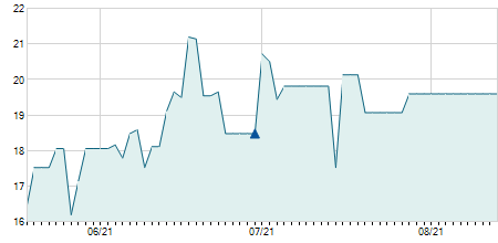 | 02/06/2023 | -0,20 / -2,02% | 10,15 | 10,15 | 9,71 | 9,71 | 9,88 | 8,48 | 1.367.300 |   |