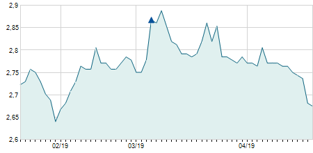 | 20/04/2017 | -0,05 / -0,27% | 18,85 | 18,85 | 18,60 | 18,65 | 18,69 | 11,55 | 151.520 |   |