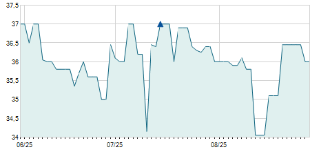 | 24/06/2015 | -0,30 / -1,36% | 22,00 | 22,10 | 21,70 | 21,70 | 21,91 | 12,21 | 271.970 |   |