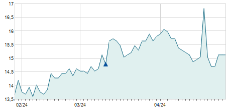 | 05/11/2020 | +1,50 / +13,16% | 12,90 | 12,90 | 12,90 | 12,90 | 12,90 | 11,68 | 100 |   |