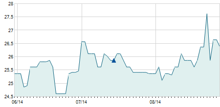 | 26/08/2020 | 0,00 / 0,00% | 8,50 | 10,00 | 8,50 | 10,00 | 9,31 | 8,88 | 1.400 |   |