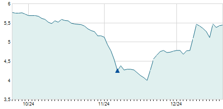 | 29/07/2022 | -0,05 / -0,91% | 5,48 | 5,54 | 5,40 | 5,43 | 5,44 | 5,43 | 2.623.900 |   |