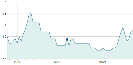 | 21/06/2022 | +0,14 / +3,84% | 3,65 | 3,84 | 3,60 | 3,79 | 3,73 | 3,79 | 6.110.400 |   |