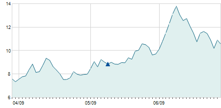 | 12/04/2022 | -0,68 / -7,00% | 9,04 | 9,50 | 9,04 | 9,04 | 9,05 | 9,04 | 10.269.100 |   |