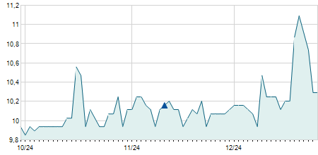 | 03/01/2023 | +0,10 / +6,25% | 1,50 | 1,70 | 1,50 | 1,70 | 1,60 | 1,70 | 249.300 |   |