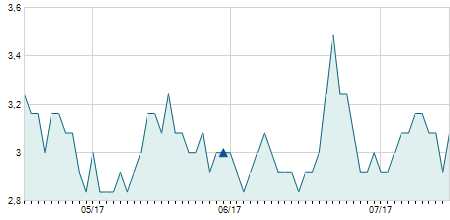 | 03/10/2023 | -0,47 / -3,25% | 15,00 | 15,48 | 13,46 | 14,00 | 14,33 | 14,00 | 11.000 |   |