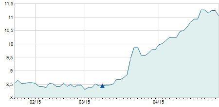 | 11/10/2023 | +0,06 / +0,44% | 13,90 | 13,90 | 13,71 | 13,79 | 13,79 | 13,79 | 2.300 |   |