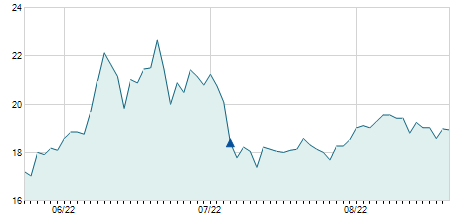 | 08/06/2023 | -0,19 / -1,45% | 13,00 | 13,06 | 12,90 | 12,90 | 12,91 | 12,90 | 7.300 |   |