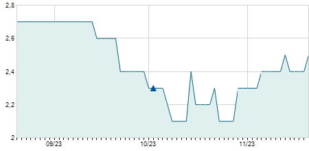 -0,40 / -2,67%