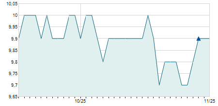 | 10/04/2025 | +0,30 / +9,68% | 3,40 | 3,40 | 3,40 | 3,40 | 3,40 | 3,40 | 123.400 |   |