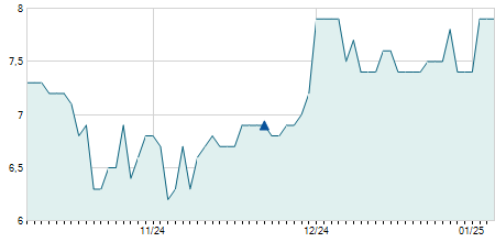 | 05/03/2008 | -4,00 / -4,71% | 81,00 | 81,00 | 81,00 | 81,00 | 81,00 | 16,69 | 78.010 |   |