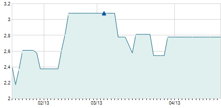 | 03/12/2015 | -0,10 / -1,64% | 6,10 | 6,10 | 5,90 | 6,00 | 6,00 | 6,00 | 1.641.110 |   |