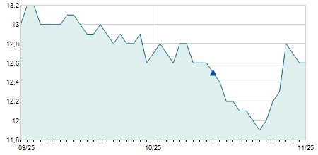 | 12/11/2012 | +0,10 / +2,56% | 4,00 | 4,00 | 3,90 | 4,00 | 4,00 | 1,26 | 119.440 |   |