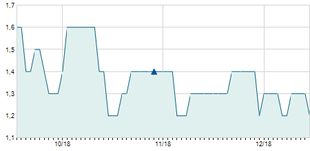 | 19/10/2010 | -0,10 / -0,88% | 11,70 | 11,70 | 11,20 | 11,30 | 11,30 | 7,46 | 39.770 |   |