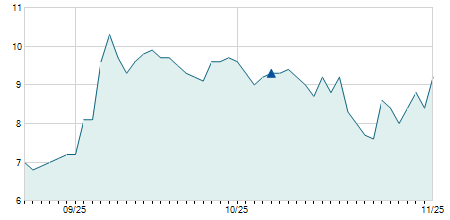| 15/11/2010 | -0,30 / -3,16% | 9,50 | 9,50 | 9,20 | 9,20 | 9,20 | 6,07 | 9.630 |   |