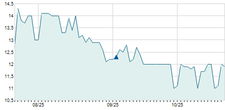 | 09/01/2009 | +0,10 / +0,84% | 11,80 | 12,00 | 11,50 | 12,00 | 12,00 | 6,00 | 2.500 |   |