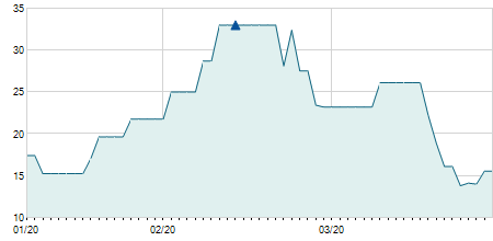 -0,80 / -5,03%