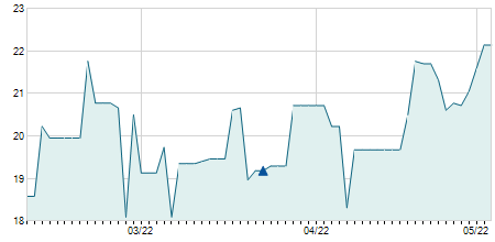 | 22/09/2020 | -0,10 / -7,69% | 1,20 | 1,30 | 1,20 | 1,20 | 1,20 | 1,20 | 44.100 |   |