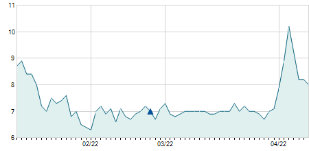 -0,75 / -5,05%