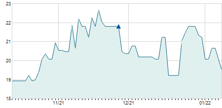 | 01/06/2020 | -0,05 / -0,36% | 13,40 | 13,90 | 12,75 | 13,65 | 13,51 | 7,64 | 107.780 |   |