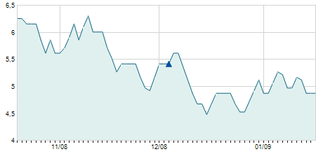 | 05/06/2019 | +0,10 / +14,29% | 0,80 | 0,80 | 0,80 | 0,80 | 0,80 | 0,80 | 200 |   |