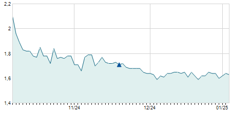 | 27/01/2021 | -0,35 / -2,08% | 16,60 | 16,80 | 16,15 | 16,45 | 16,30 | 8,67 | 48.100 |   |