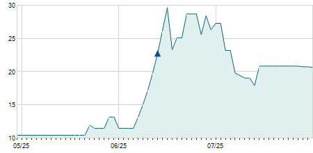 | 06/01/2025 | -0,85 / -6,72% | 13,00 | 13,00 | 11,80 | 11,80 | 12,04 | 11,03 | 75.800 |   |