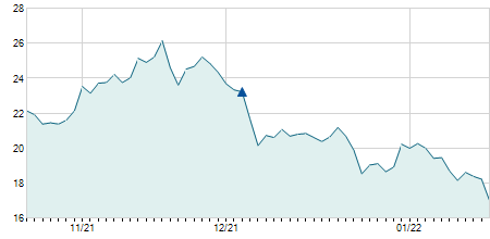 | 24/01/2022 | -1,05 / -4,37% | 24,05 | 24,35 | 23,00 | 23,00 | 23,67 | 12,99 | 81.000 |   |