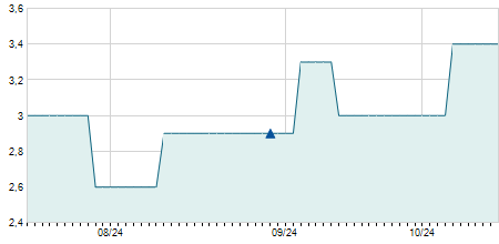 | 01/11/2023 | 0,00 / 0,00% | 10,00 | 10,10 | 9,90 | 10,00 | 10,00 | 8,70 | 14.300 |   |
