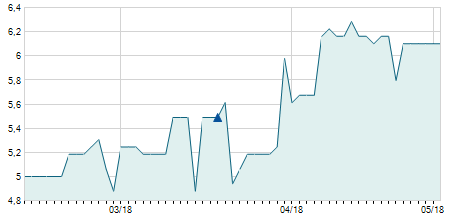 | 03/11/2020 | +0,30 / +1,72% | 17,40 | 17,70 | 17,40 | 17,70 | 17,53 | 13,03 | 59.000 |   |