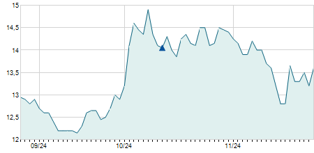 | 12/09/2025 | 0,00 / 0,00% | 4,50 | 4,80 | 4,50 | 4,70 | 4,69 | 4,70 | 54.730 |   |