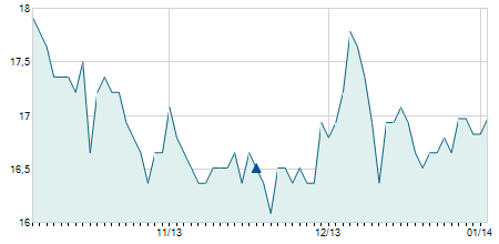 | 30/05/2022 | +0,10 / +0,72% | 14,90 | 14,90 | 14,00 | 14,00 | 14,10 | 9,08 | 1.200 |   |